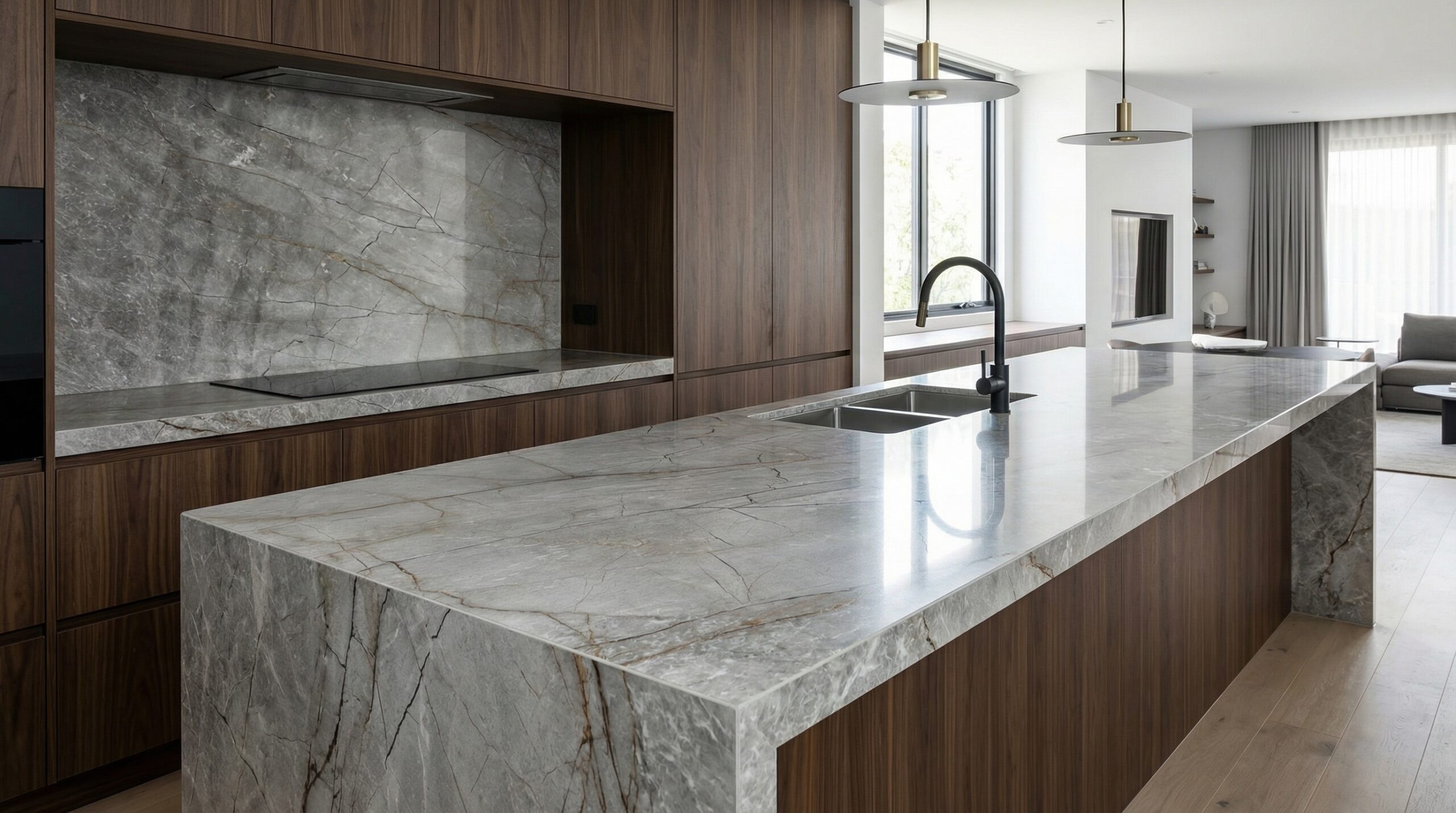 Silver Root Marble – A striking natural marble known for its deep grey and charcoal base highlighted by intricate, root-like white veining. Its bold and dramatic pattern creates a strong visual impact, making it perfect for feature walls, countertops, and luxury interiors. Each slab is unique, adding natural depth, texture, and a sophisticated modern edge to any space.